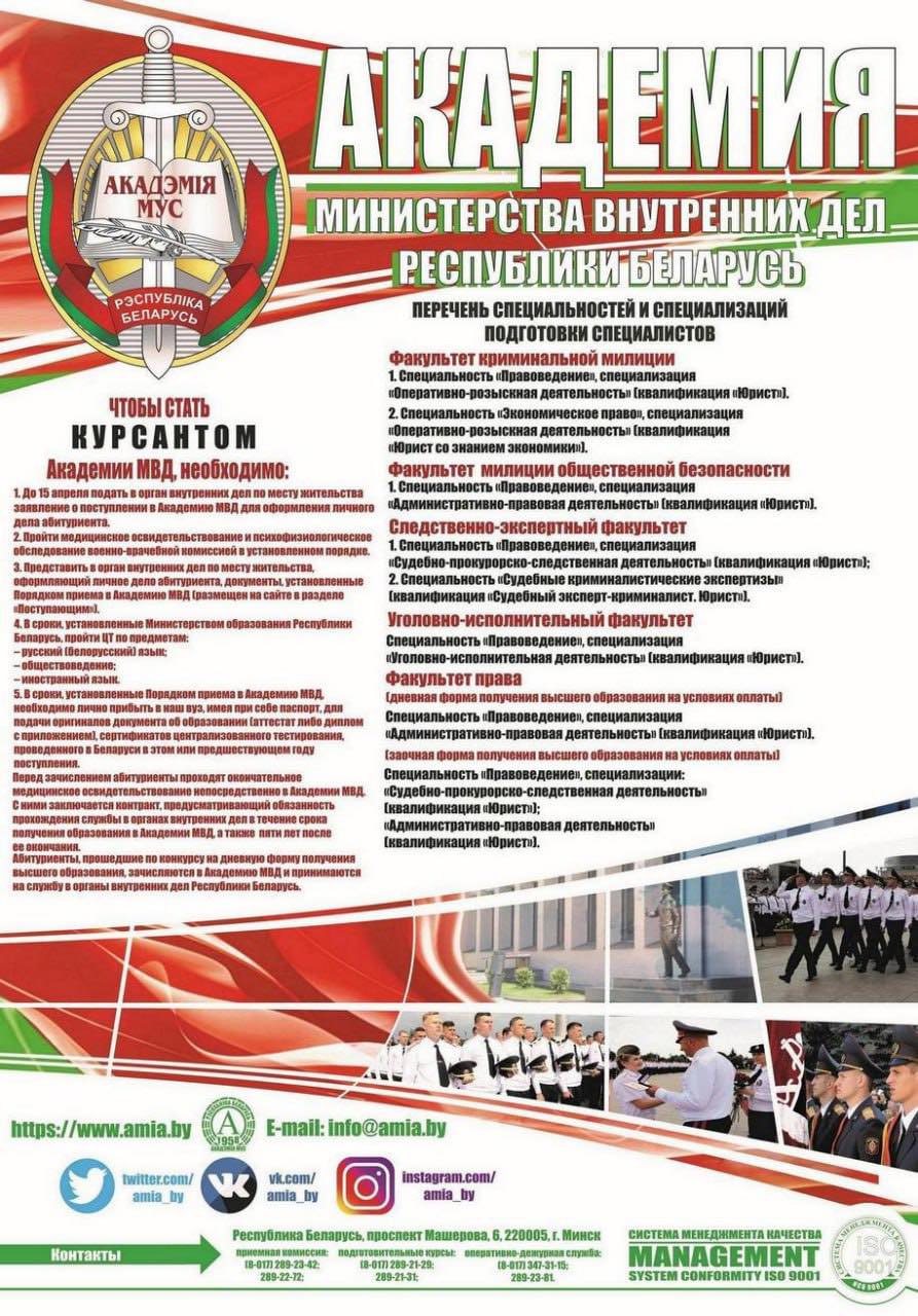 Поступления в учреждения образования МВД